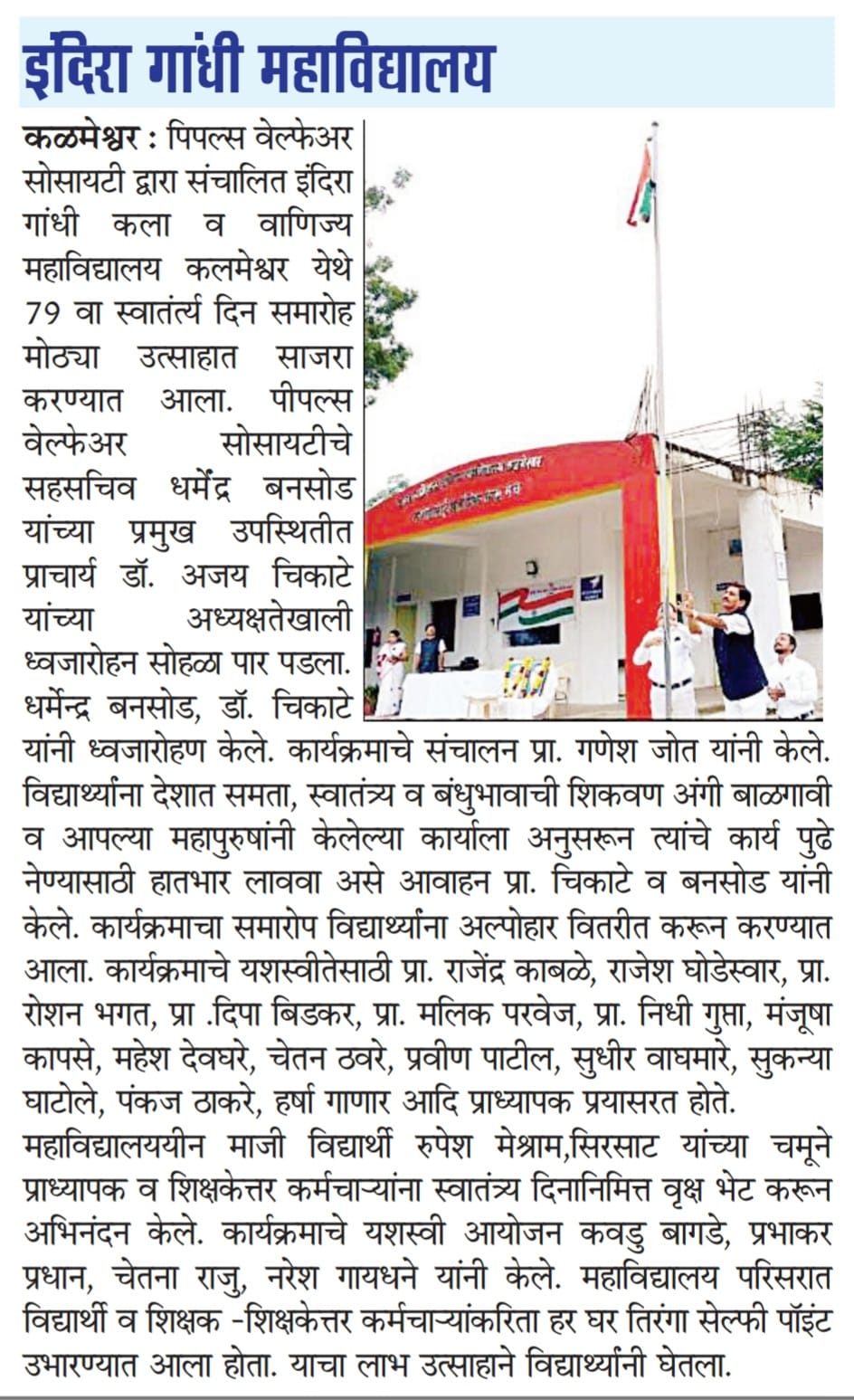 इंदिरा गांधी महाविद्यालय कळमेश्वर तर्फे संविधान दिनानिमित्त रॅली काढण्यात आली